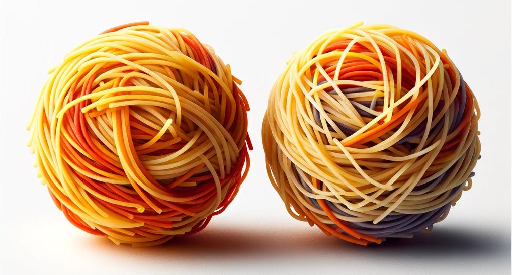 As we journey through life, crisscrossing our own myriad experiences, we collect a rich array of learnings and moments. Imagine this path as a pile of spaghetti: each journey winds and overlaps, yet follows its distinct route. In this complex web of existence, no two journeys, or 'spaghetti', are the same – each a unique sequence of twists, turns, and flavors, much like how each entrepreneur carves a unique path in the business world. For an entrepreneur, this metaphor is especially poignant. Why? Let's explore.